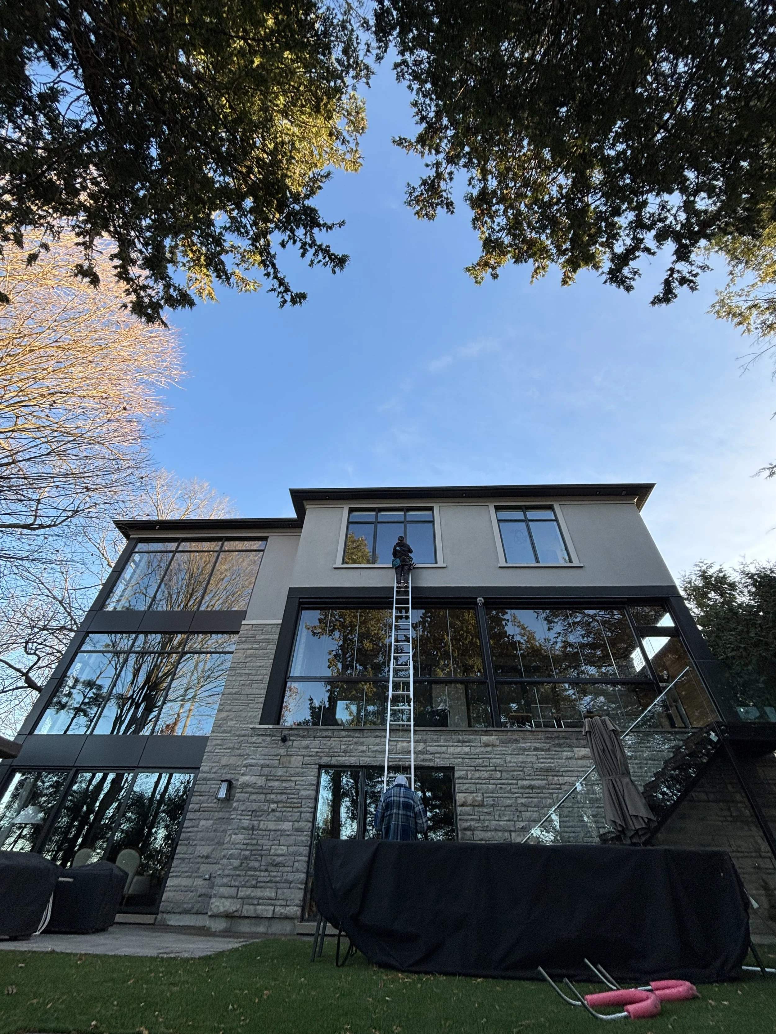 Stone Cliff Window Cleaning has been in the window cleaning business servicing the GTA since 2010. We provide high quality window cleaning, eavestrough cleaning, eavestrough whitening, eavestrough guard installation, eavestrough and downspout repair, pressure washing and Christmas light installation.